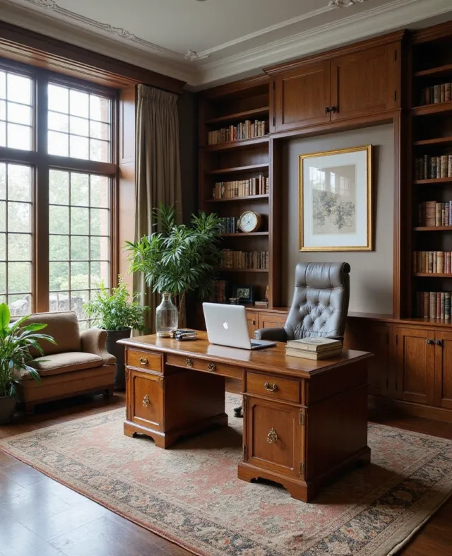 A luxurious home office boosts productivity and creativity. A refined desk, ergonomic seating, and personalized décor make the space both functional and stylish.