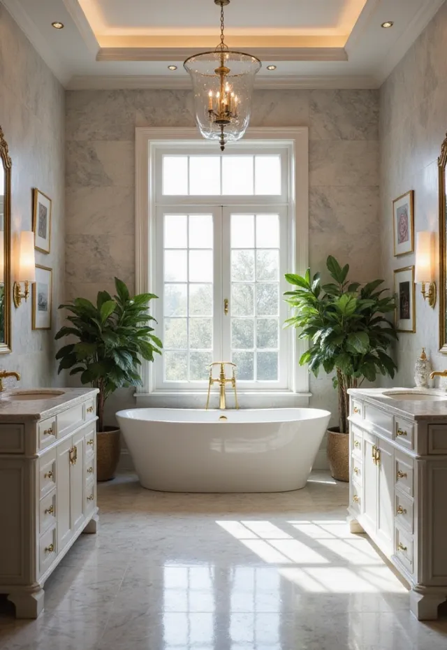 Luxury bathrooms are designed to offer calm and relaxation. Think soaking tubs, rain showers, double vanities, and rich materials like marble and gold fixtures. With the right lighting and mirrors, your bathroom becomes a true sanctuary.