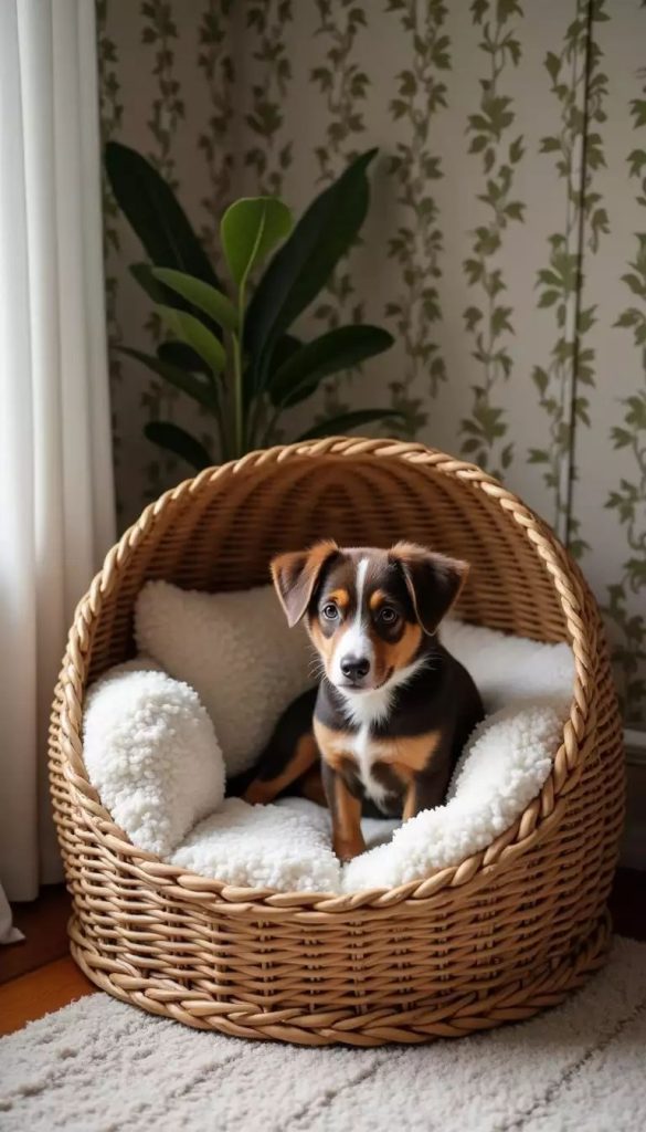 Wicker baskets are lightweight, breathable, and visually appealing. Their natural material adds warmth to any room, while their sturdy shape makes them an excellent base for a pet bed. With a few simple adjustments, a basic basket can become a stylish resting place your dog will love.