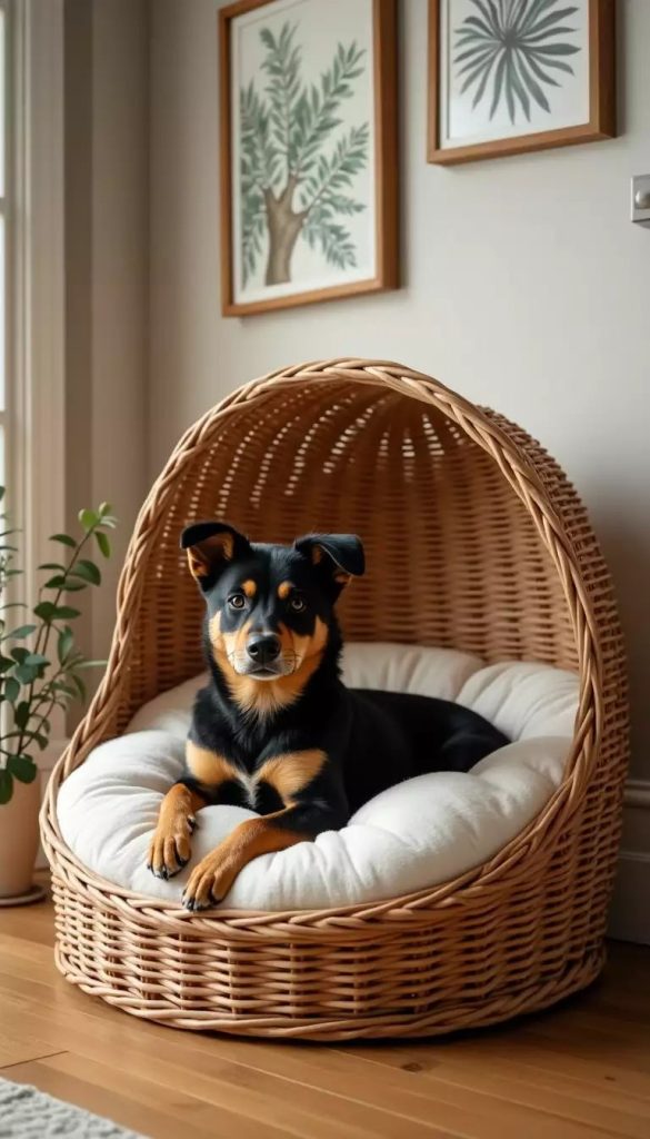A boho-inspired dog bed made from a wicker basket offers the perfect balance between function and design. It provides your pet with a cozy place to rest while enhancing the overall look of your living space. With minimal effort, you can create a unique and comfortable retreat your dog will enjoy every day.