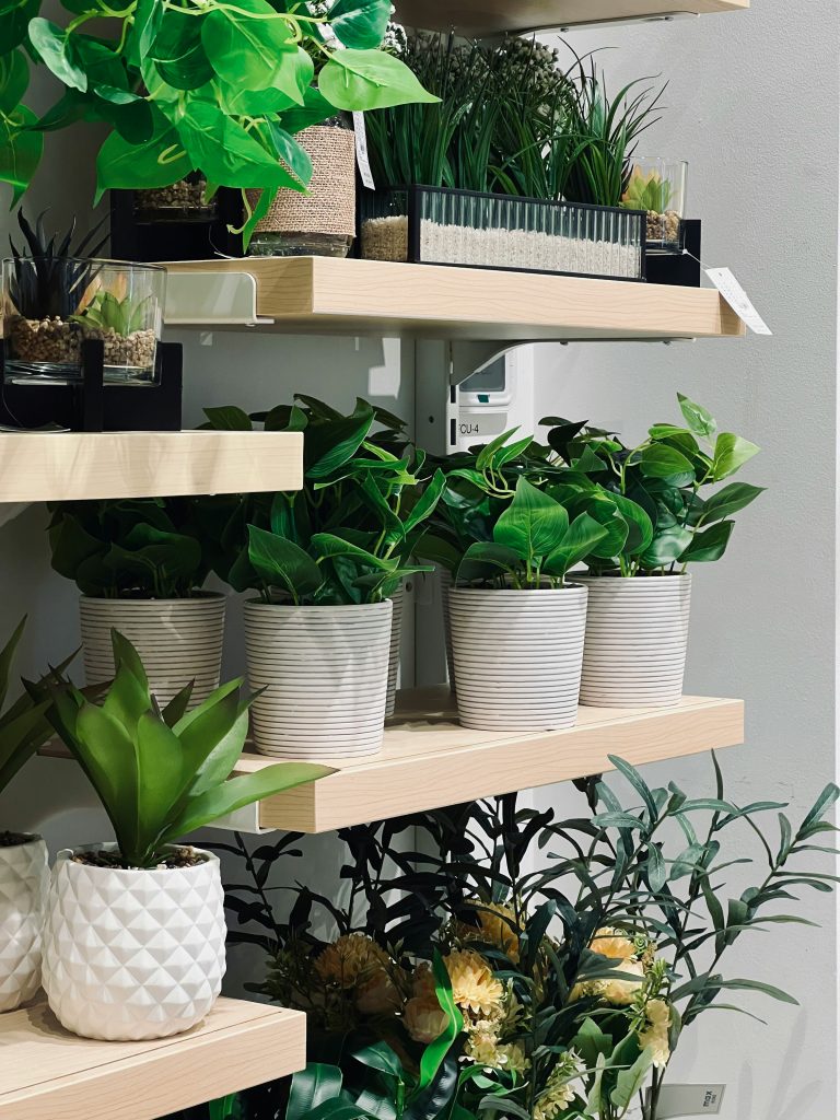 Grid-style shelving systems are flexible and modern. You can arrange shelves in different patterns, mix plants with decorative items, and adjust the layout as your collection grows.
