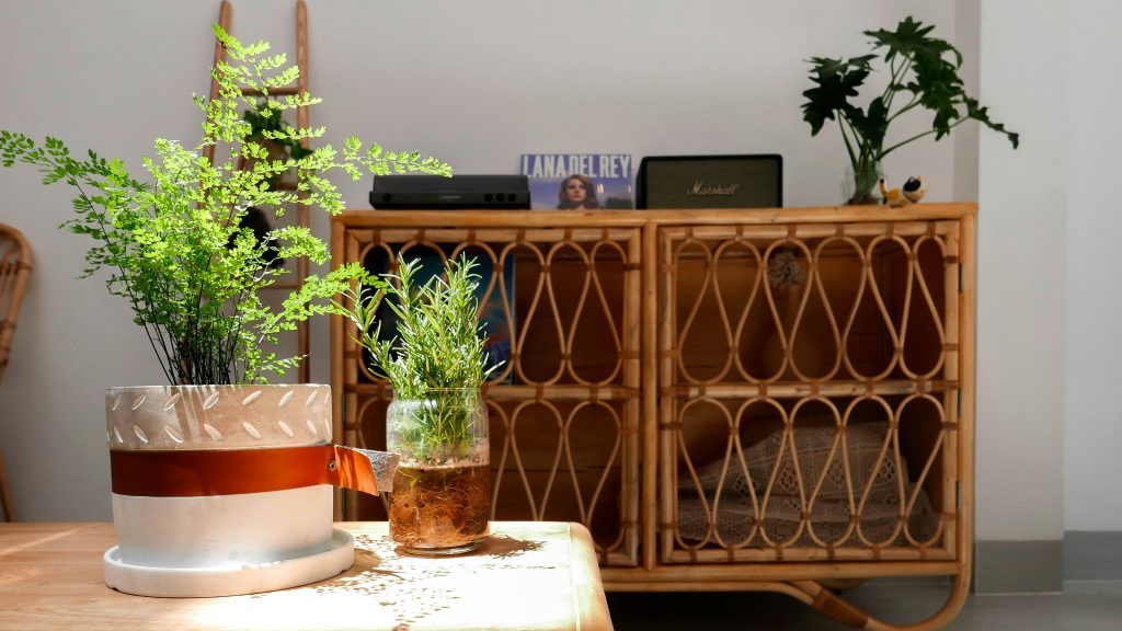 Wooden plant stands elevate your plants off the floor, creating a clean and organized look. They help highlight greenery as a decorative feature while keeping your space tidy and visually balanced. Sculptural designs also turn the plant stand itself into a decorative element.