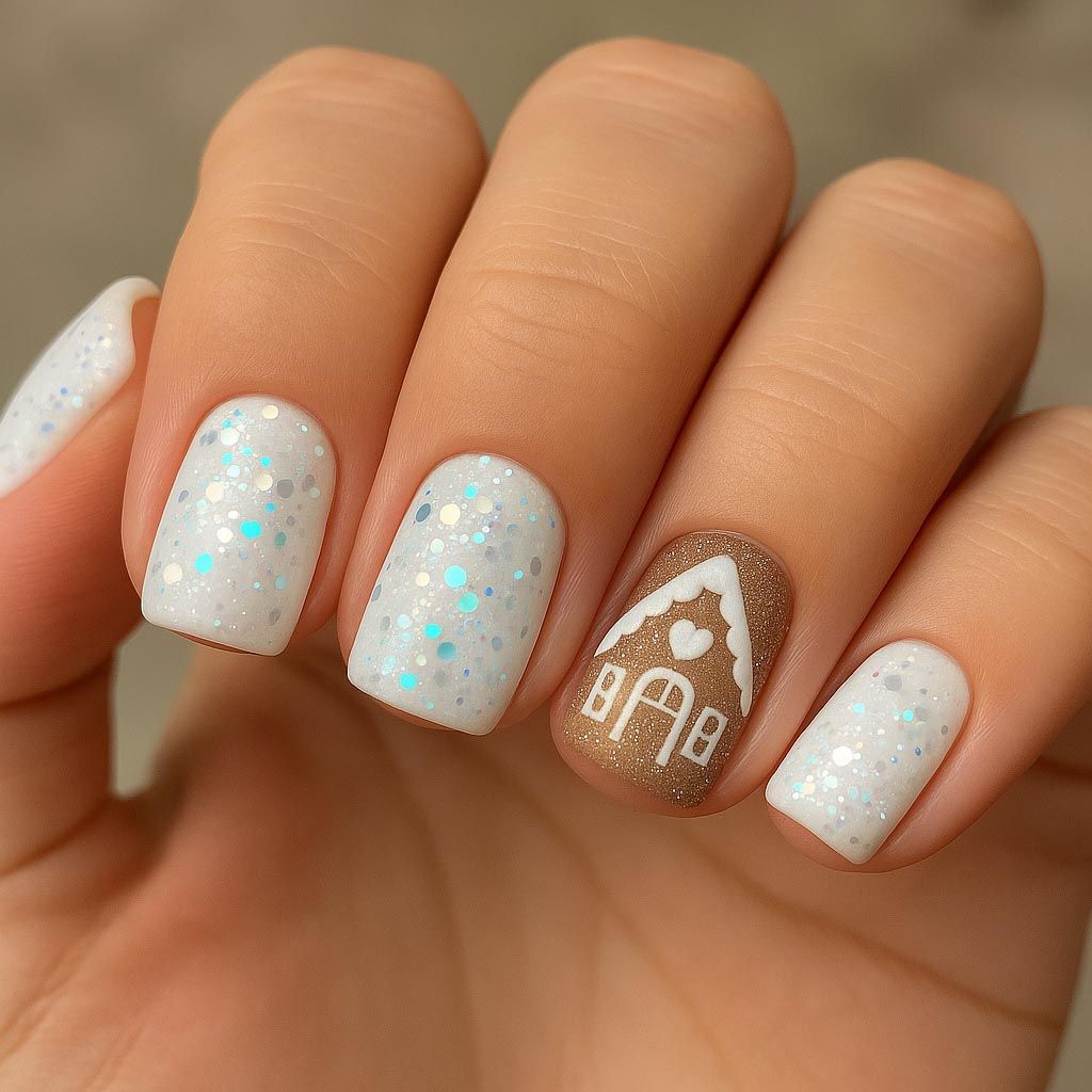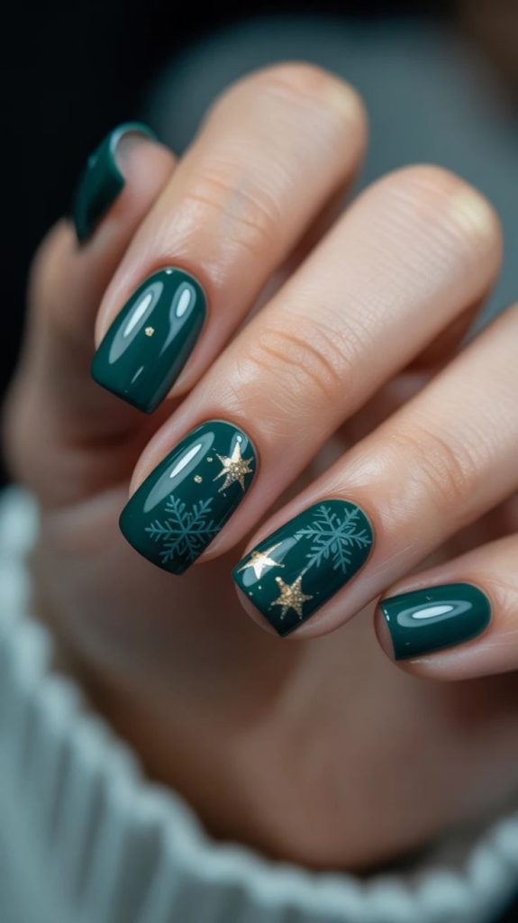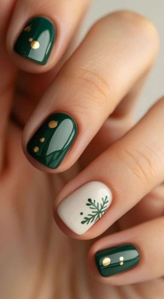Simple designs like small stars, holly leaves, or micro dots work beautifully on short nails. These minimalist patterns keep your manicure elegant while still capturing the holiday spirit.
