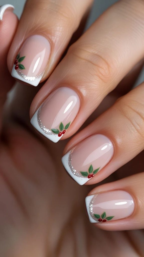 Give the classic French manicure a festive update by swapping white tips for red, green, or gold. This style looks especially chic on short nails and suits both casual and formal holiday outfits.